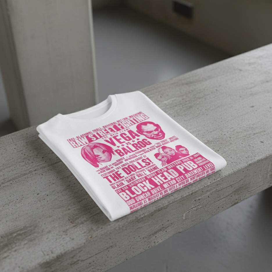 Commemorating the June 10, 1992 underground fighting match between Vega and Balrog in Block Head Pub. Stacked undercard included Blair Dame and the Mad Gear Gang Grudge match.